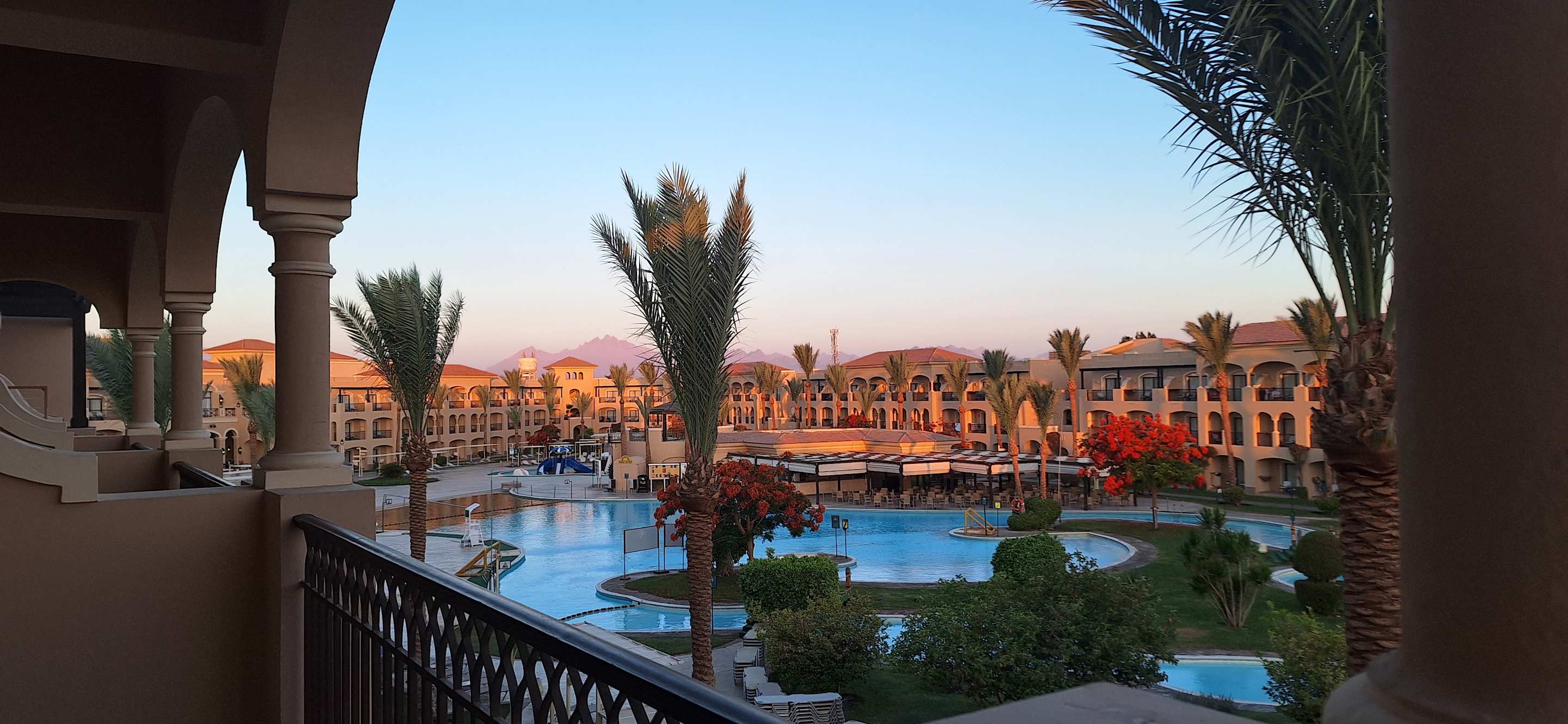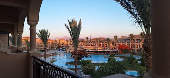 AusblickBlick auf Pool 17 bei Sonnenuntergang