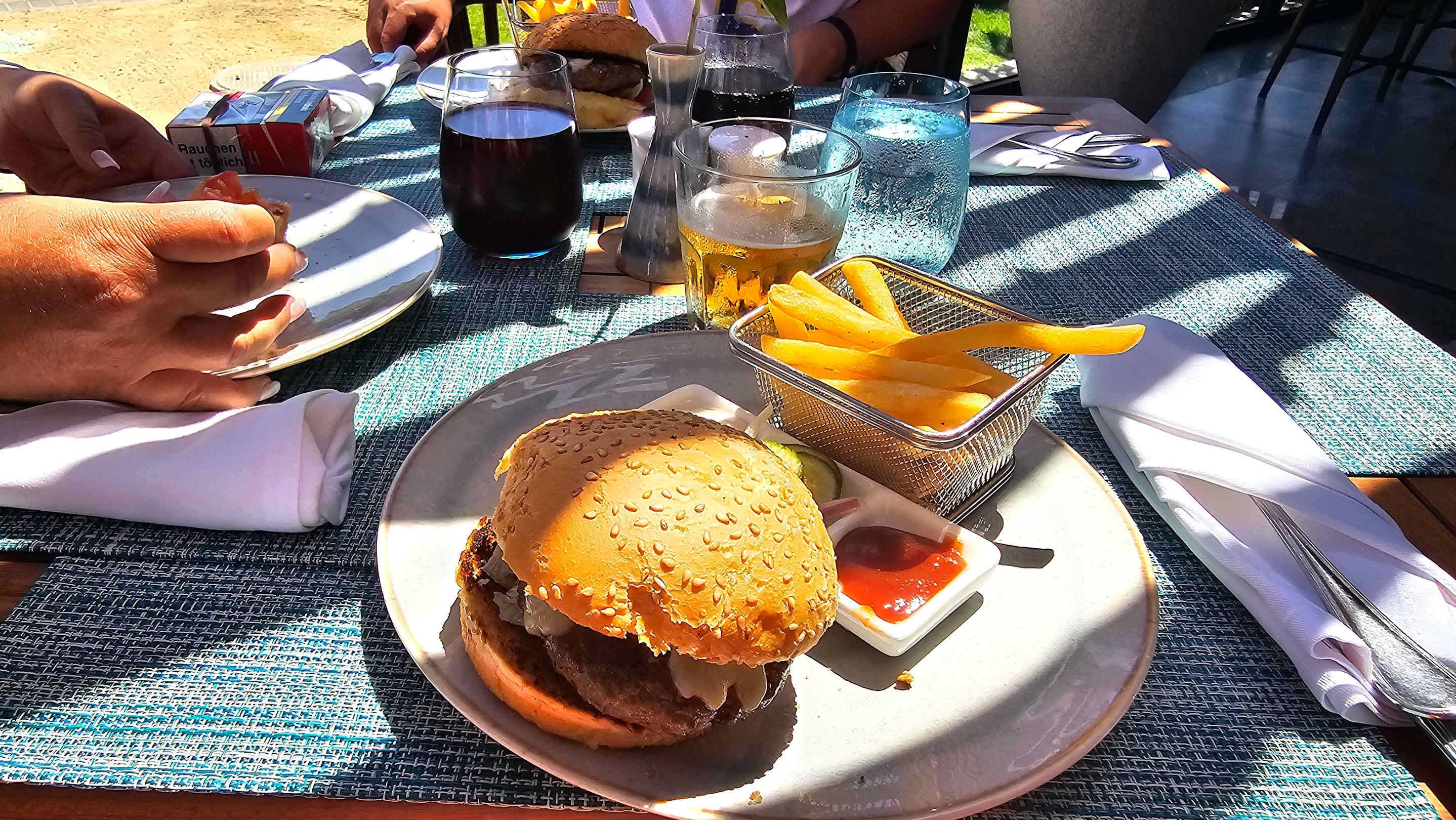 Cheeseburger an der Beach-Bar