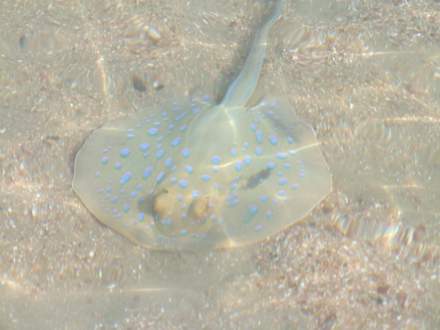 Des öfteren haben wir ganz vorne, wo man am Strand in der Bucht ins Wasser gehen kann, Rochen gesehen. Total klasse. Auch deshalb ist es vielleicht besser Schuhe anzuziehen.