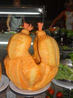 Wundervoll geschnitzte Melonen und Kürbisse