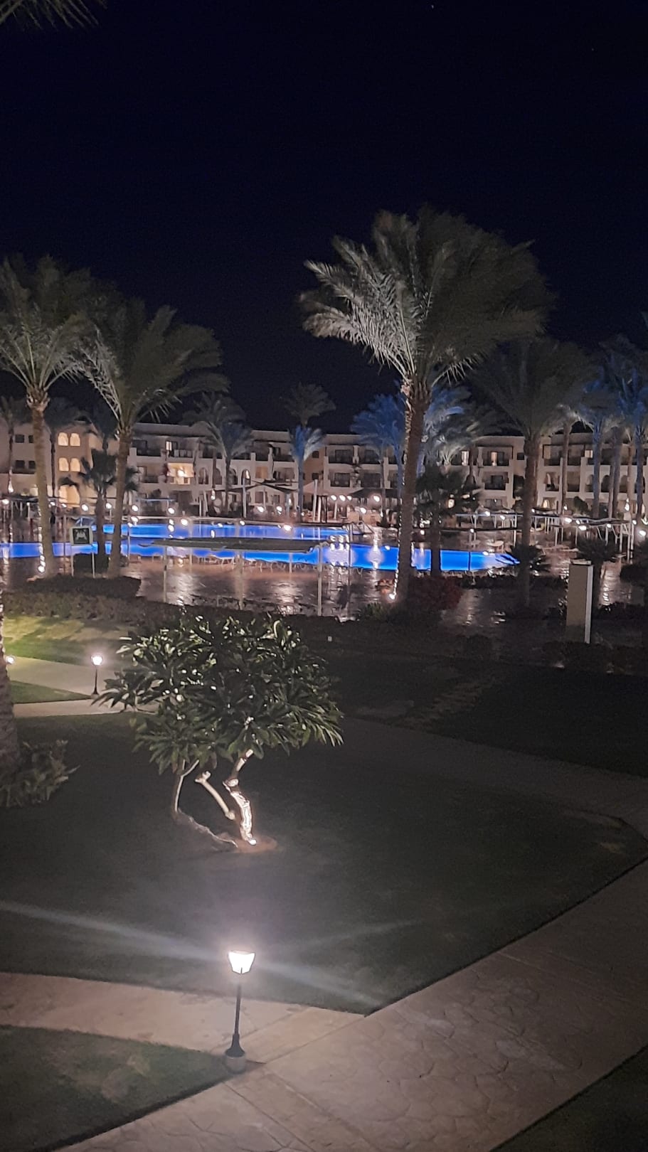 Anlage bei Nacht mit Pool