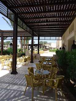 Blick auf den Aussenbereich vom Restaurant