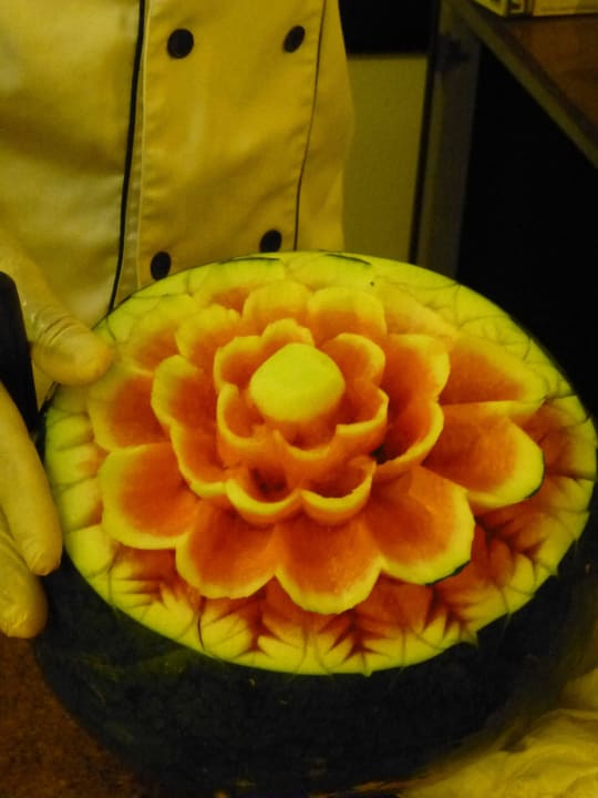 Blumenschmuck aus Melonen