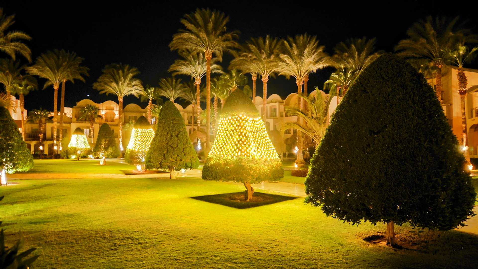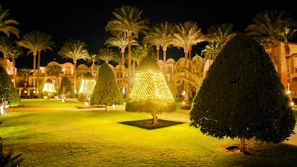 Der Garten ist für Weihnachten geschmückt