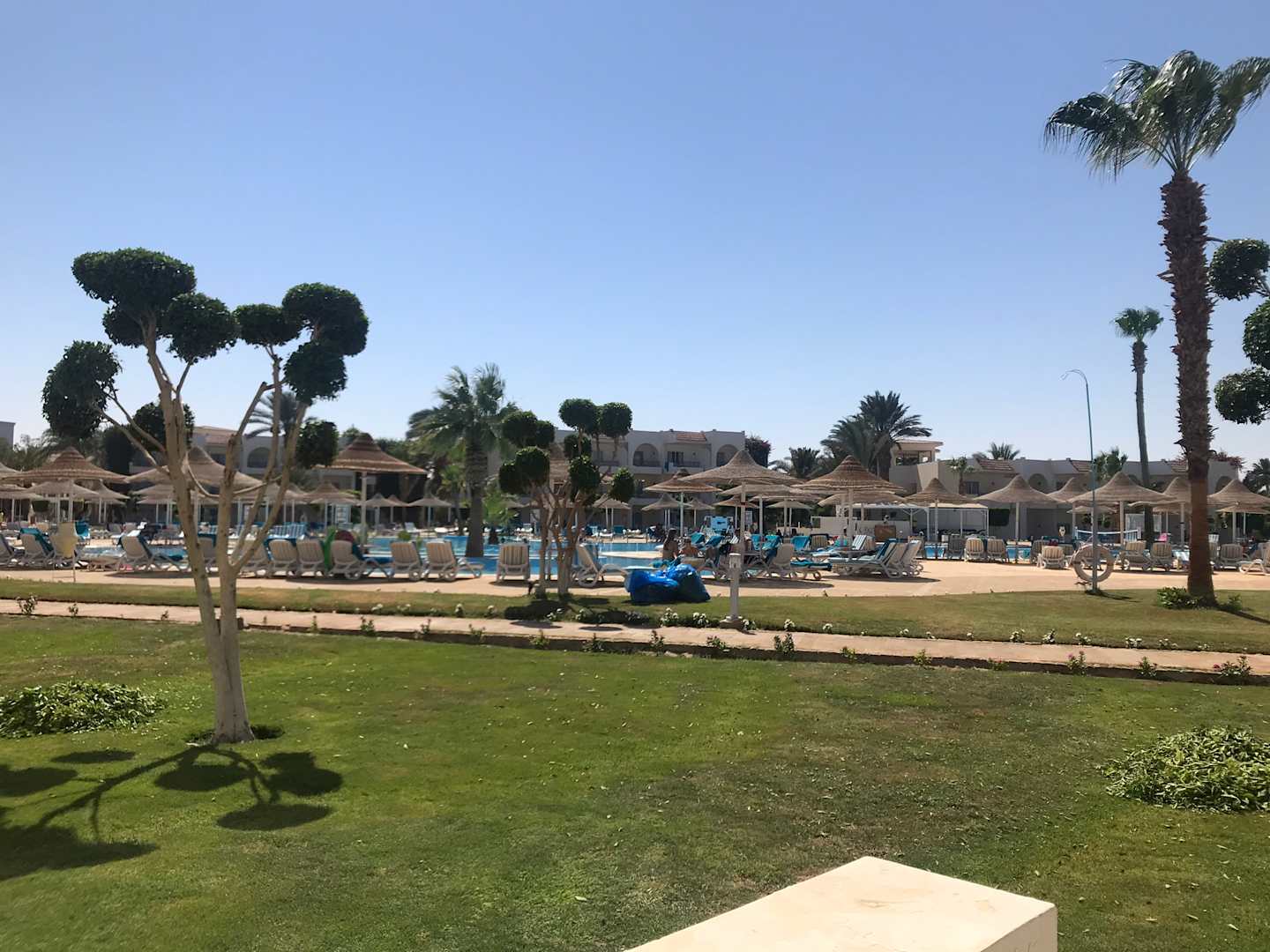 GartenanlageAusblick vom Zimmer auf den Pool.