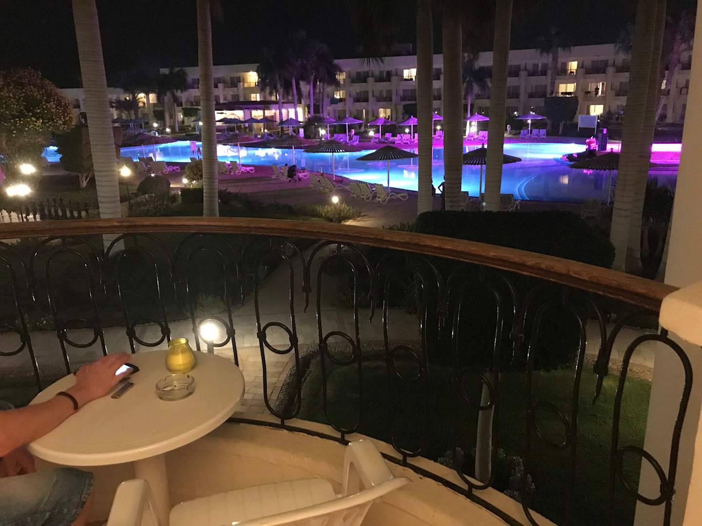Direkter Blick auf den Pool vom Balkon