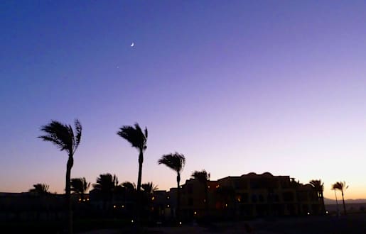 Werdender Abend mit Blick auf das Hotel Samaya