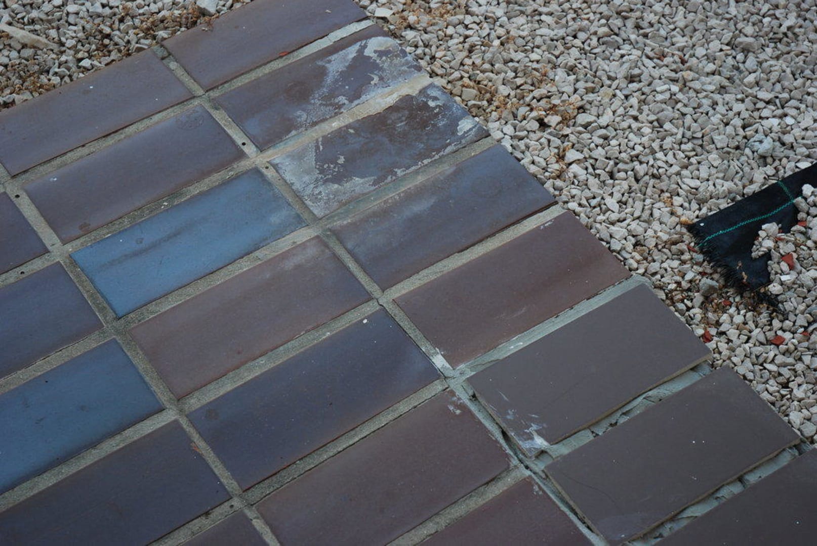 lockere bzw. teilweise provisorisch nachträglich geklebte Fliesen - total unordentlich verfugt