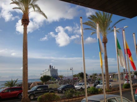 Blick vom Hotelausgang auf den Kreuzfahrthafen