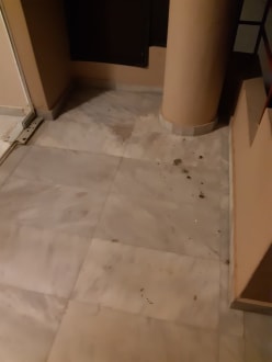 Treppen Zugang zu den Hotelzimmer mit altem Vogel Kot verunreinigt.