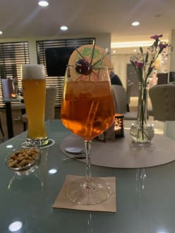 Im unteren Eingangsbereich des Hotels befindet sich auch eine nette Bar, die am Abend auch von den Gästen sehr gut besucht war. Freundliches Personal und schmackhafte Getränke