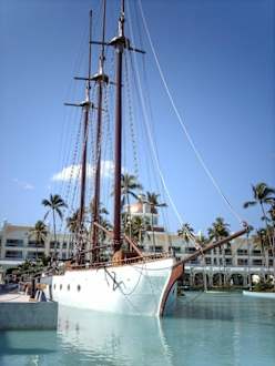 Musikbühne auf dem Schiffund darunter die Diskothek / Karaokebar