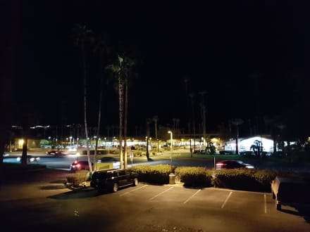 Blick vom Balkon auf den gegenüber liegenden Supermarkt