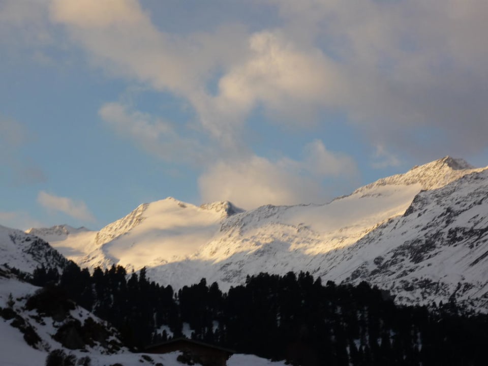 Blick auf die Berge vom Balkon unseres Zimmers.