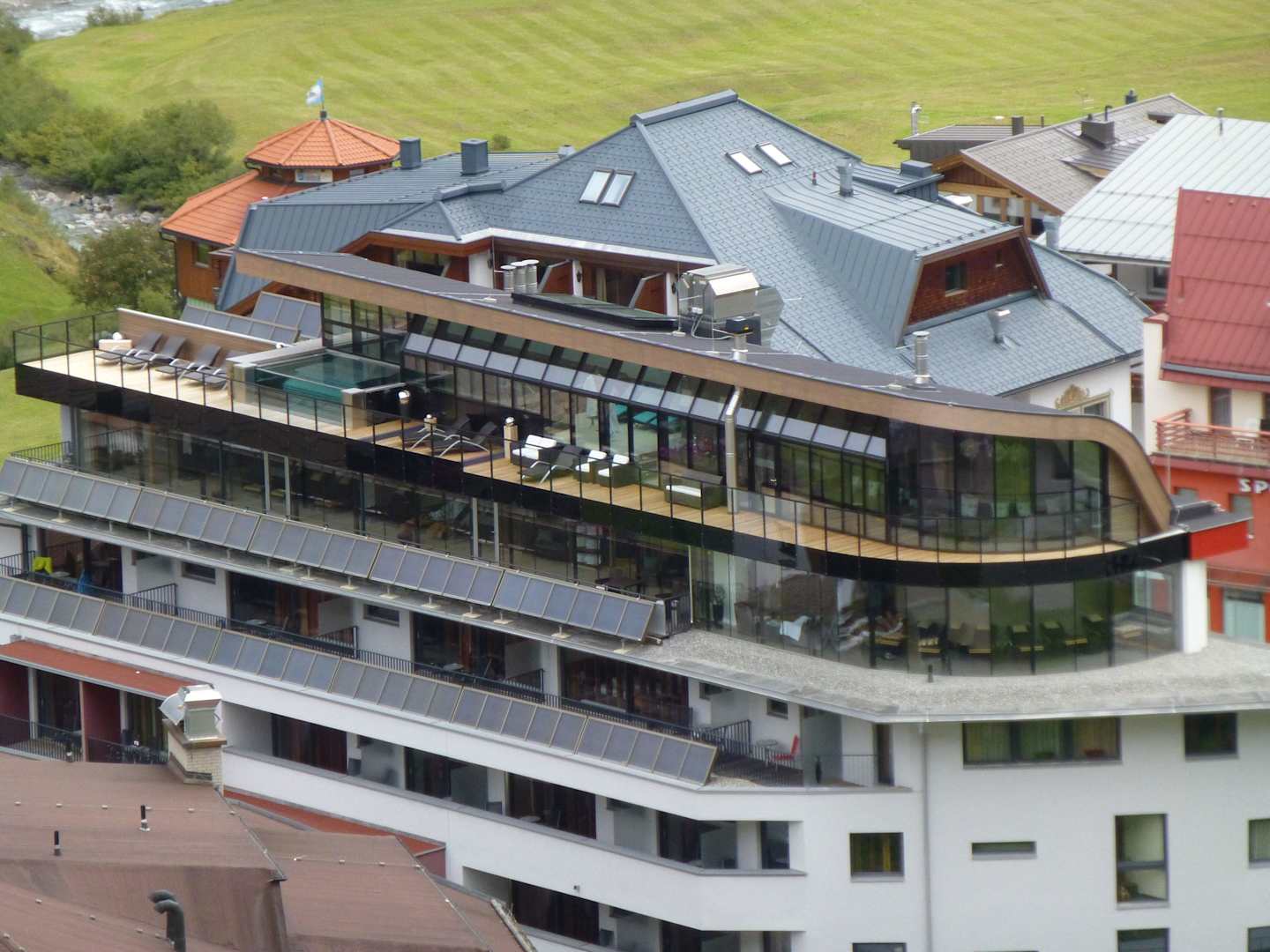Außenansicht mit Wellnessbereich und Außenpool