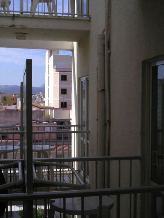 geradeaus auf die Balkone der davorliegenden Einzelzimmer