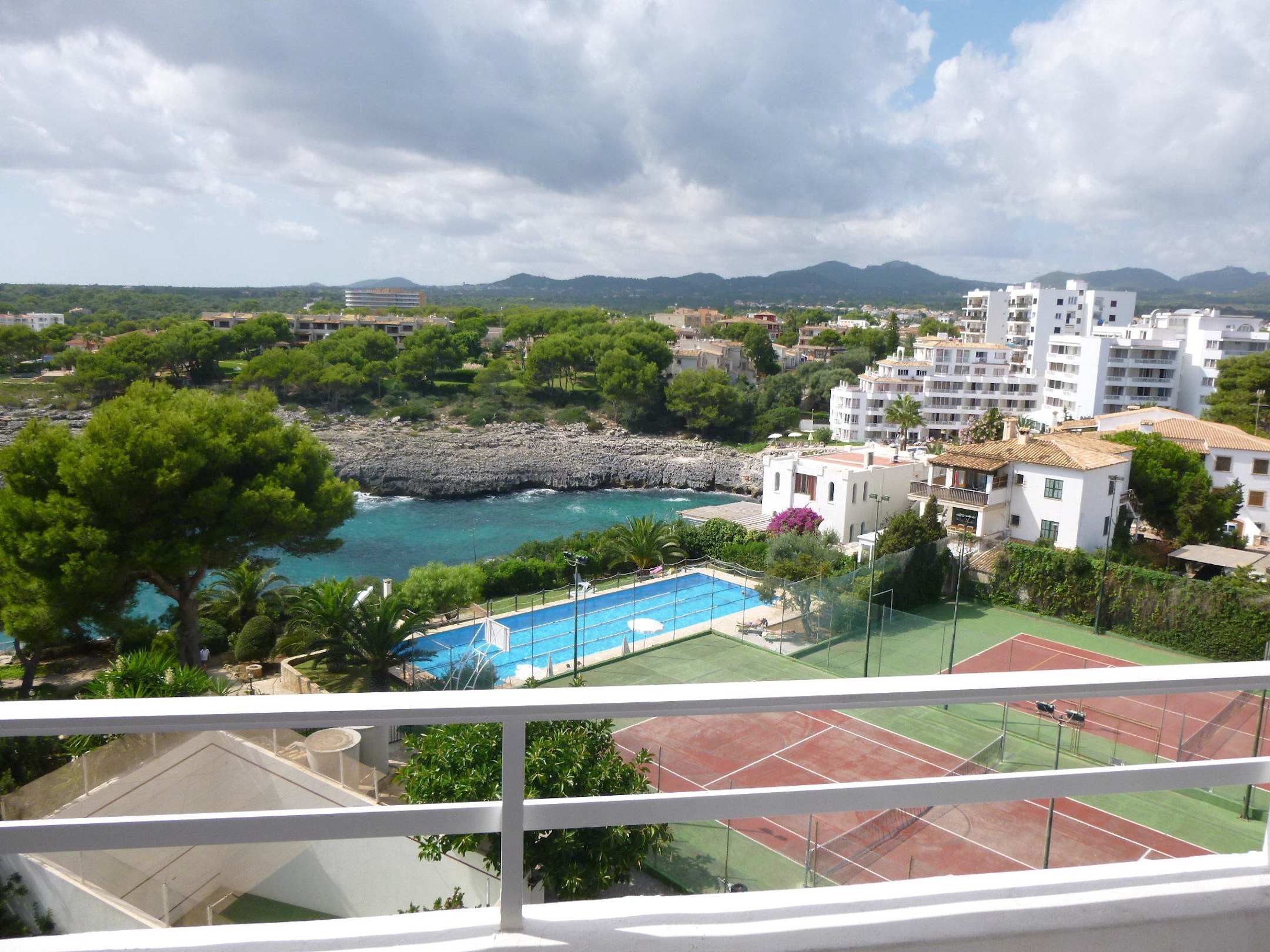 Blick von 503 auf grossem Pool, Tennis und Bucht