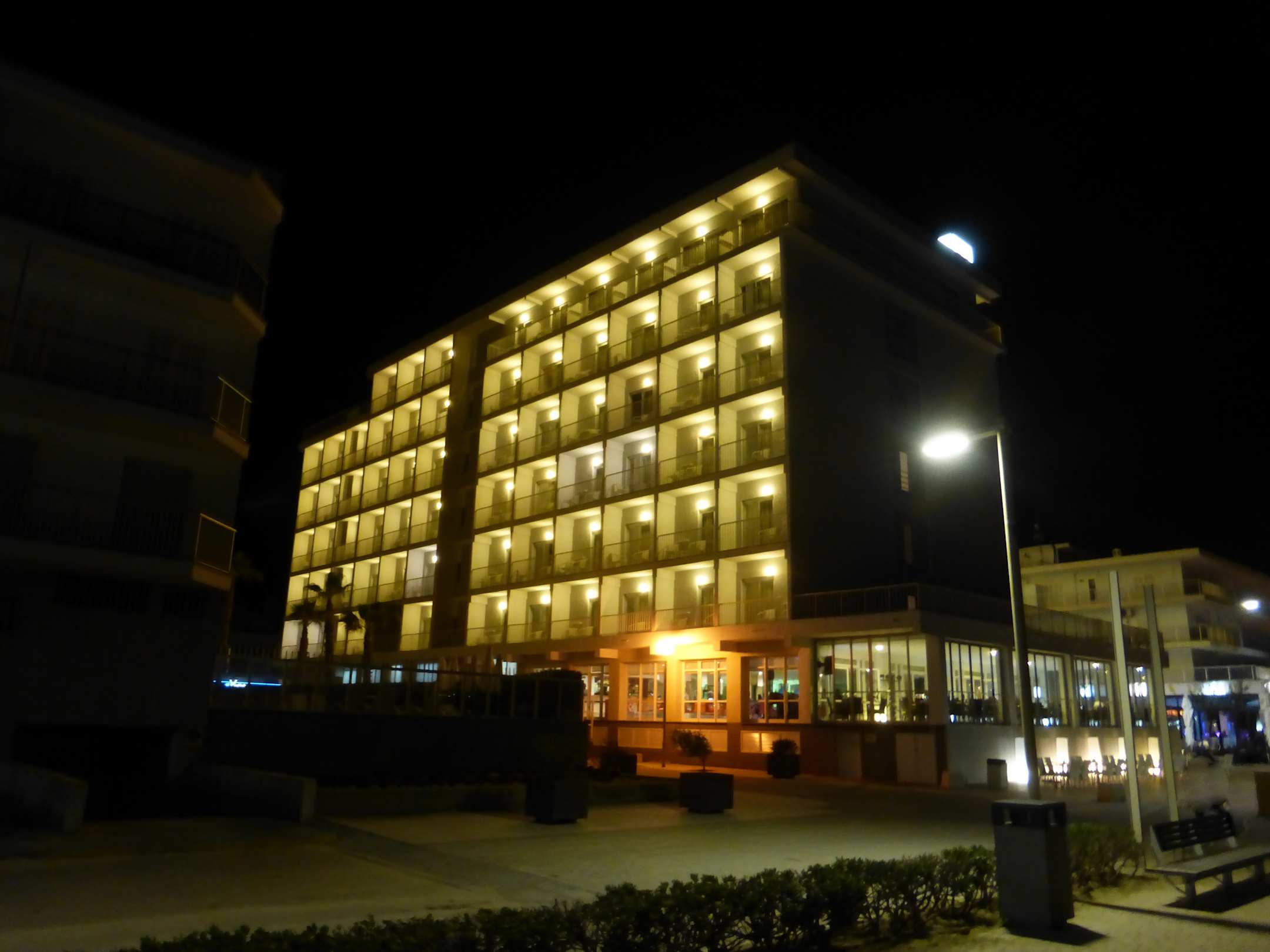 Das JS Hotel Miramar bei Nacht.