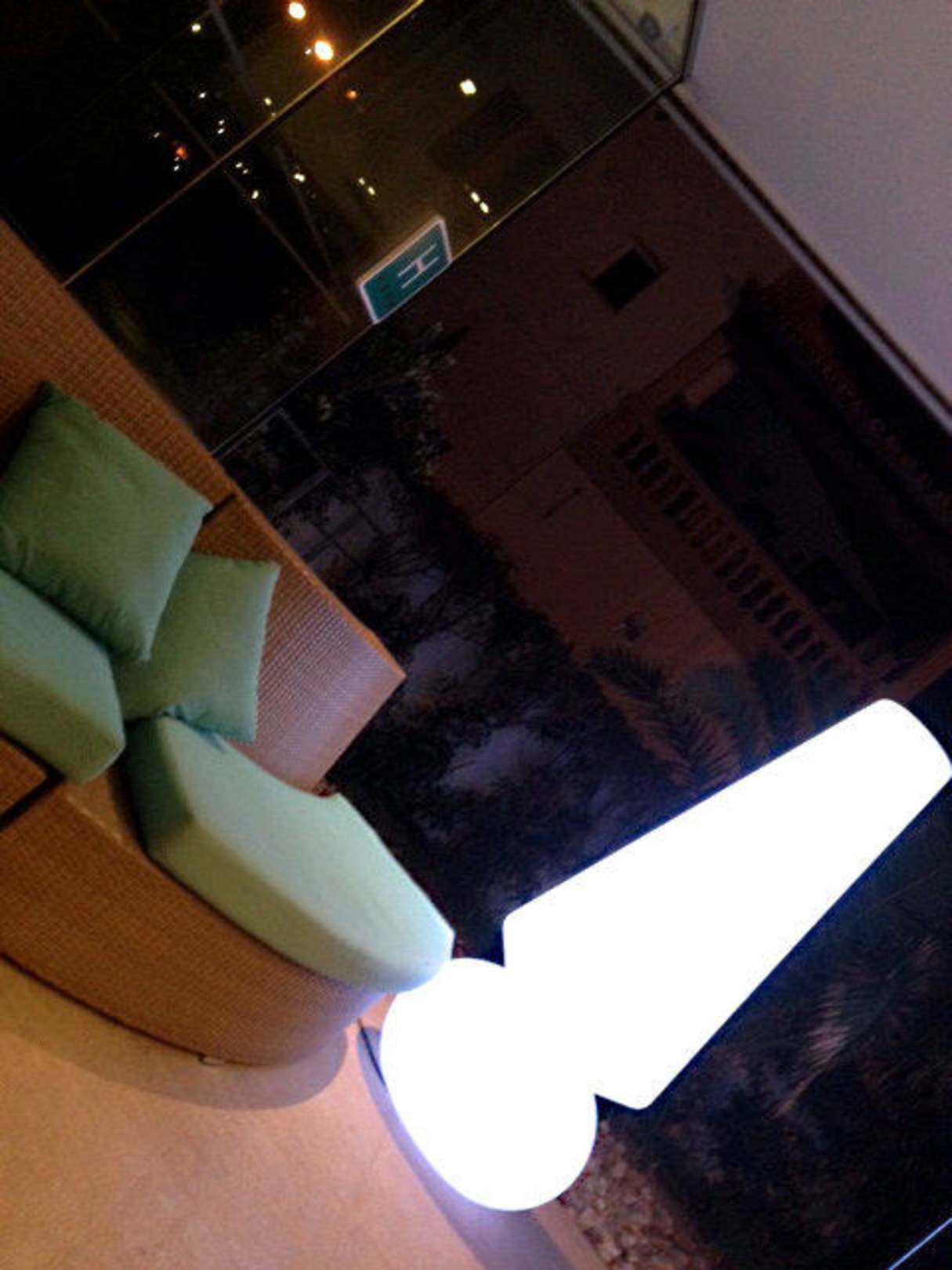 Vor dem Eingang moderne Sitzmöglichkeit