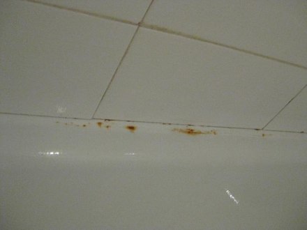Das BadSo sah nicht nur der Rand der Badewanne aus, auch in der Wanne innen waren waren Beschädigungen weiß übermalt.