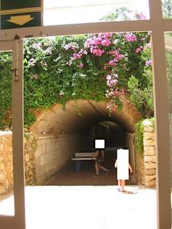 Der lange Weg zum PoolVom Haupthaus führt unter der Straße entlang ein Tunnel zum Pool.Darin findet Tischtennis statt!Am Ende 2 lange Treppen (links davor die unter Wasser stehende Toilette), endlich oben gehts wieder treppauf u.wieder treppab,mit Kleinkindern zu weit !