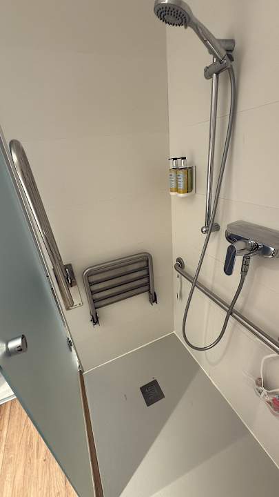 ZimmerDie Glastür dient als Vorhang für die Dusche und funktioniert nicht wie erwartet. Das Ergebnis ist eine Überschwemmung des Badezimmerbodens.