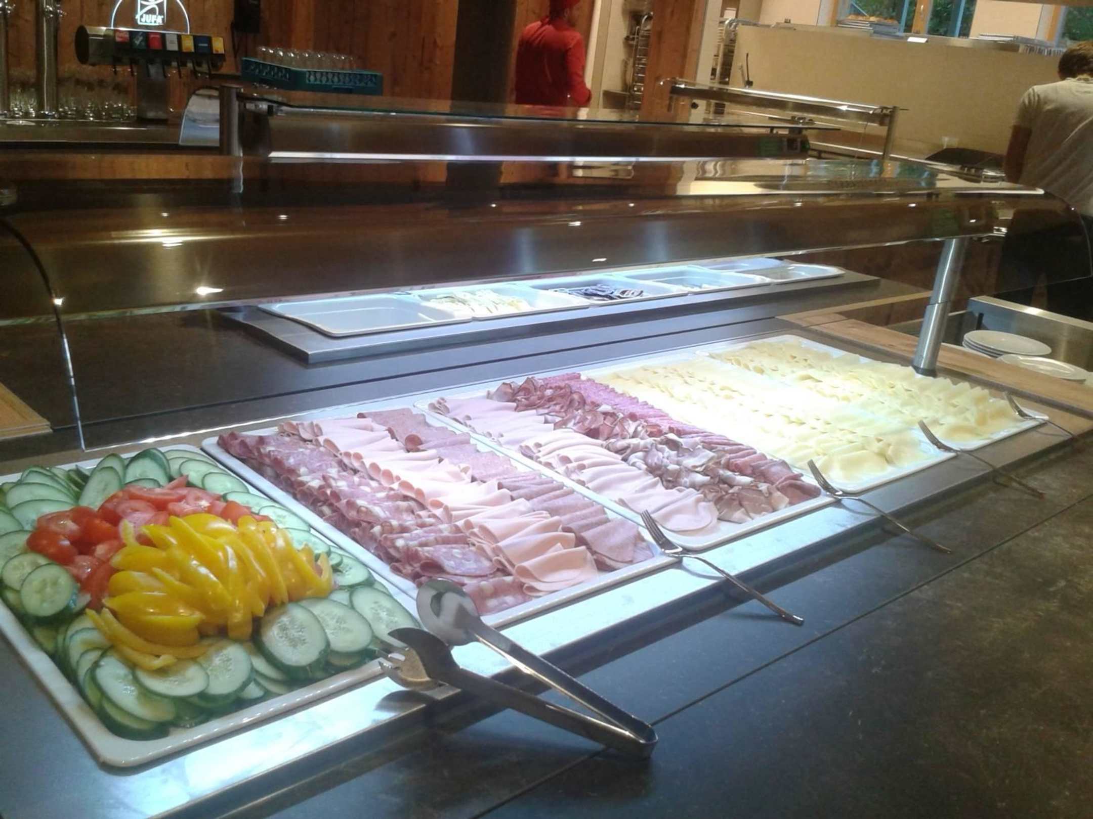 Frühstück: Gemüse, Wurst und Käse