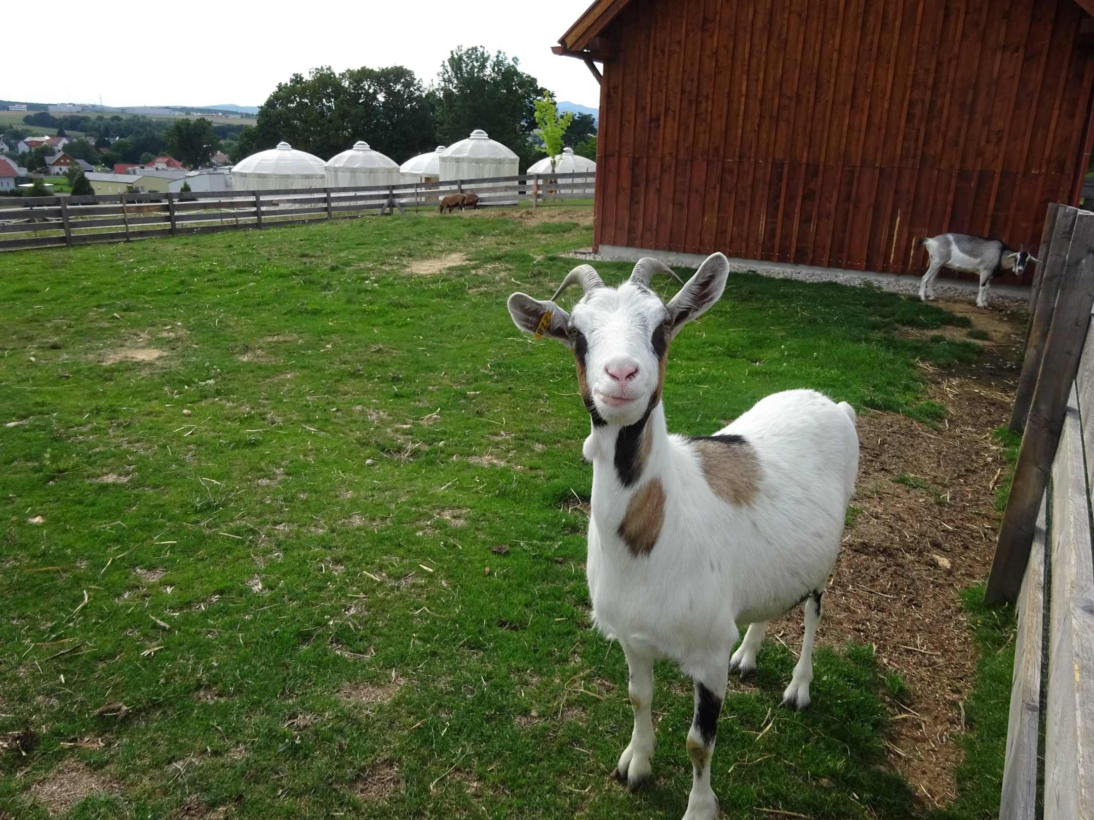 Streichelzoo mit Jurten im Hintergrund