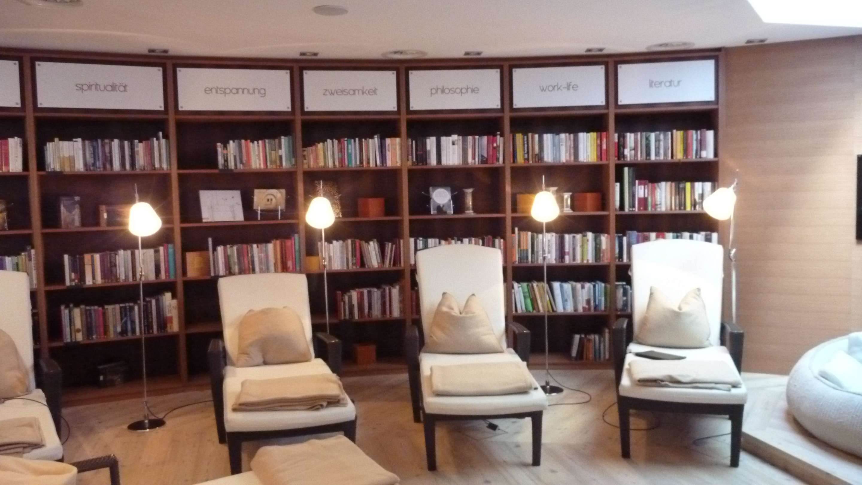 Gut sortierte und gemütliche Bibliothek im Spa