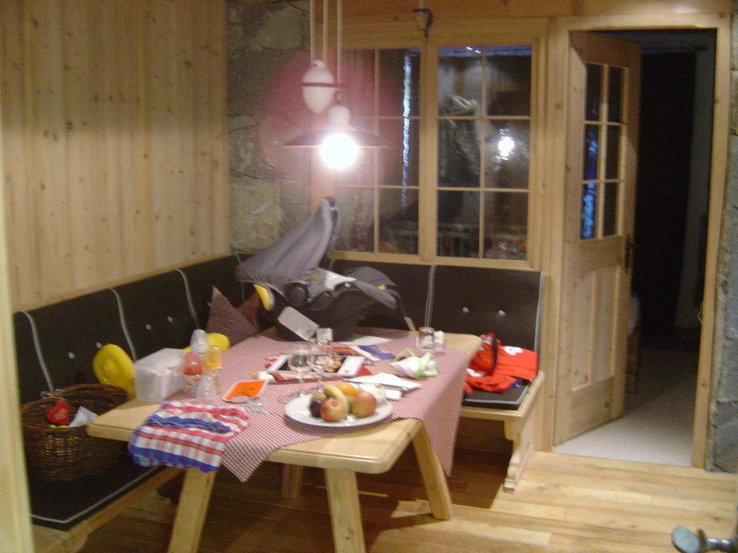 Die schöne gemütliche Sitzgruppe, daneben die Tür zu einem der zwei SChlafzimmer