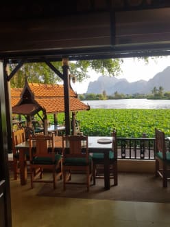 Restaurant im Resort mit Blick auf den Angelsee