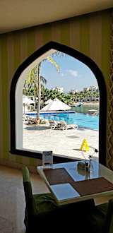 Blick aus Fenster beim Frühstück