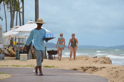 Kostenloser Eiswasser-Service am Strand