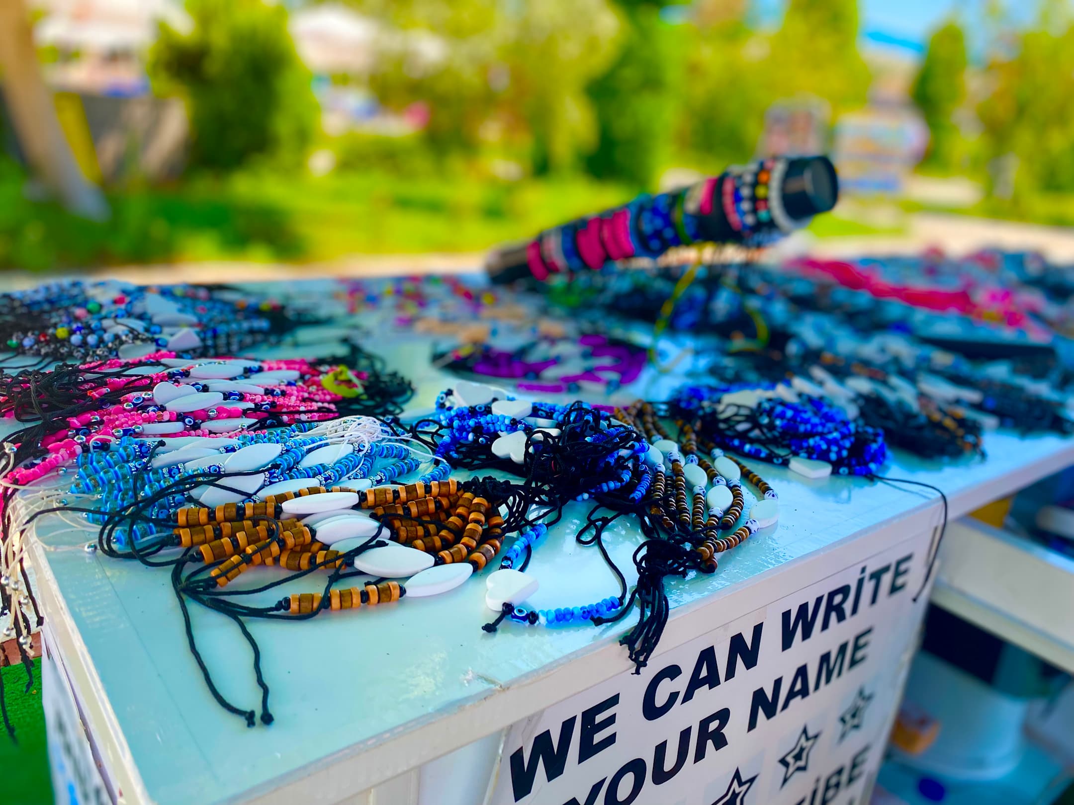 Hassan hat einen eigen Stand neben dem Hauptpool am Weg zum Strand. Jeder sollte bei ihm ein kleines Souvenir mitnehmen. Mit viel Liebe gemacht und kommt bei jedem gut an.