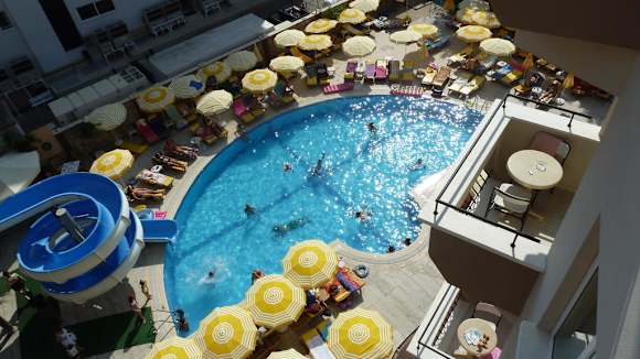 Blick aus Zimmer 405 auf den Pool