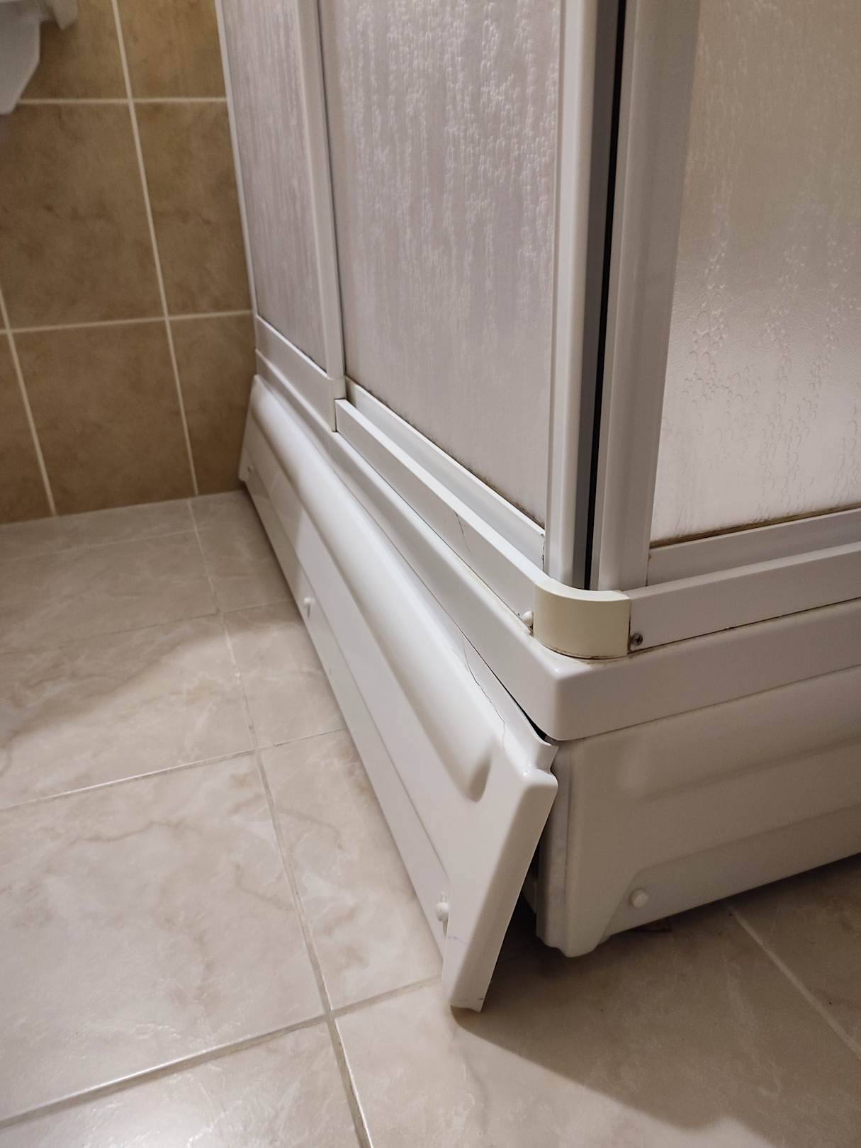 Dusche defekt und es ist gefährlich, da das Unterteil immer wieder raus fällt.