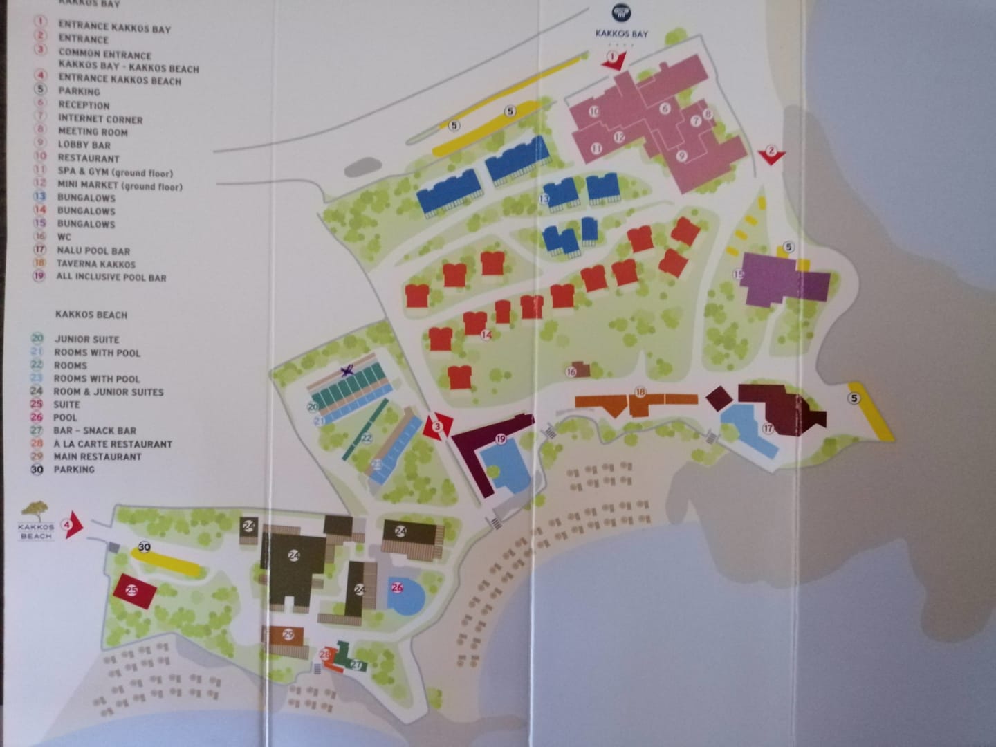 Lageplan des Hotels (Linke Seite - Kakkos Beach, rechte Seite - Kakkos Bay)