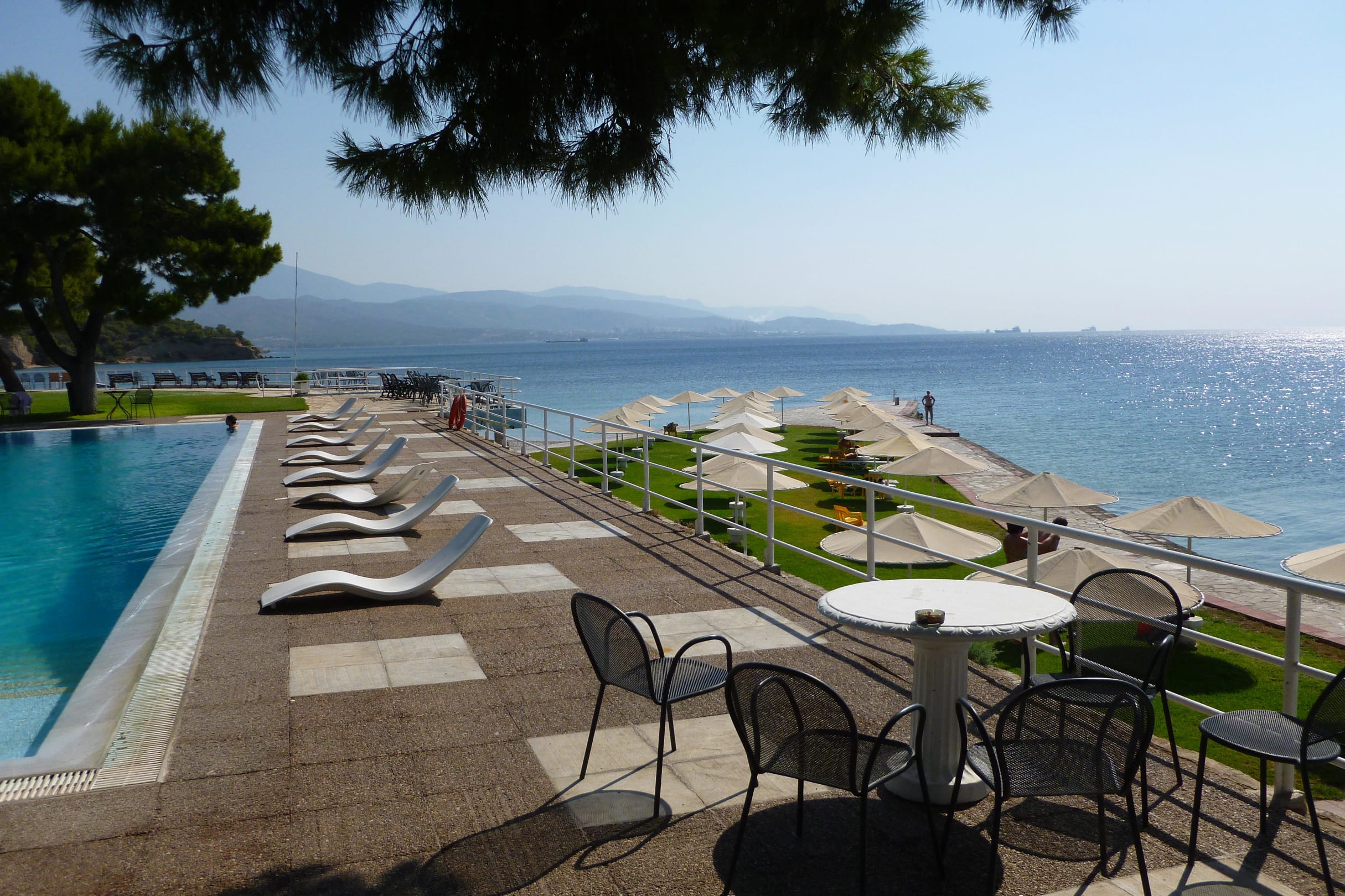 Blick zu Pool und Strand