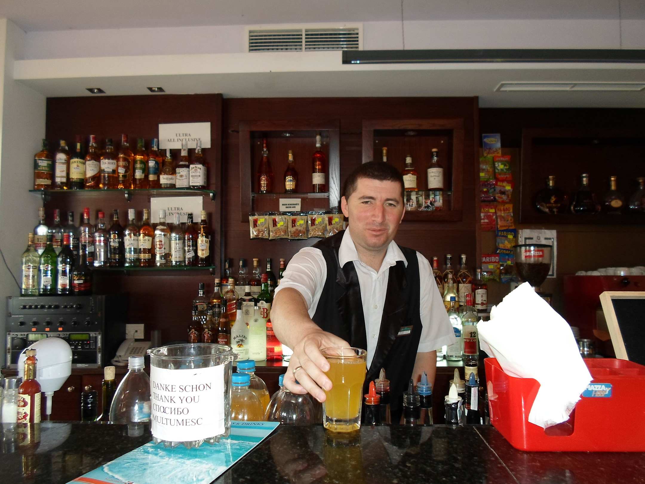 Netter Kellner an der Strandbar