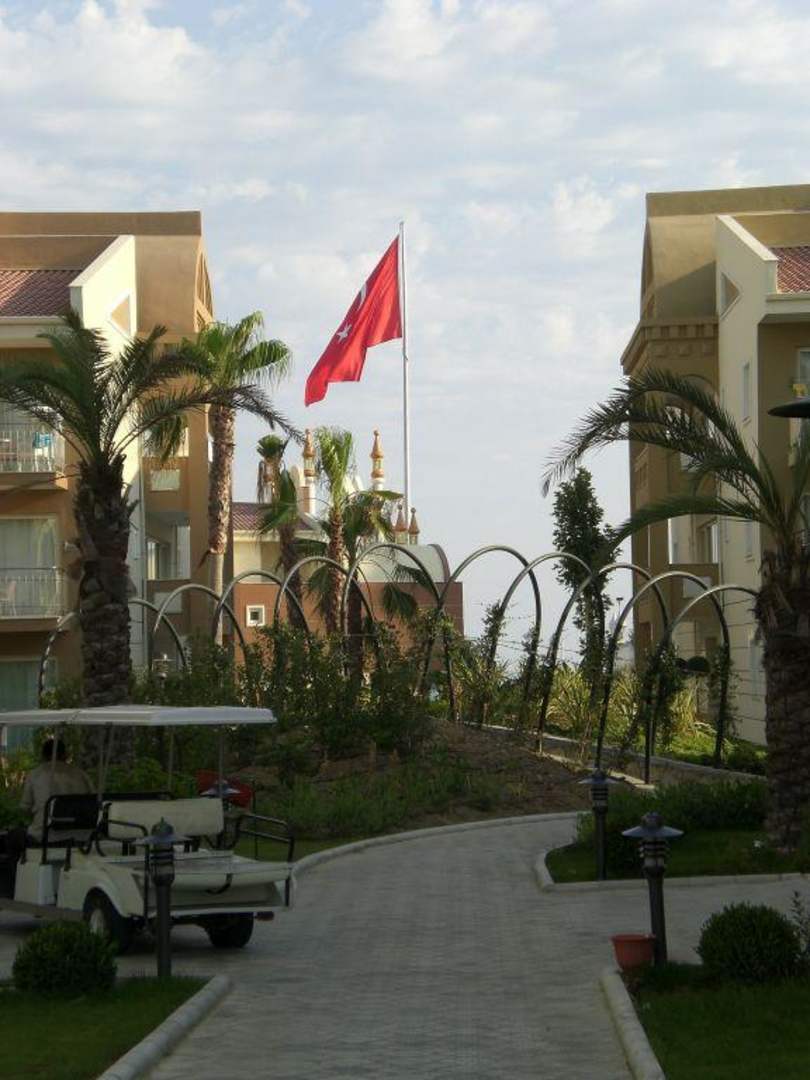 Gartenalnge mit riesengroßer türkische Flagge