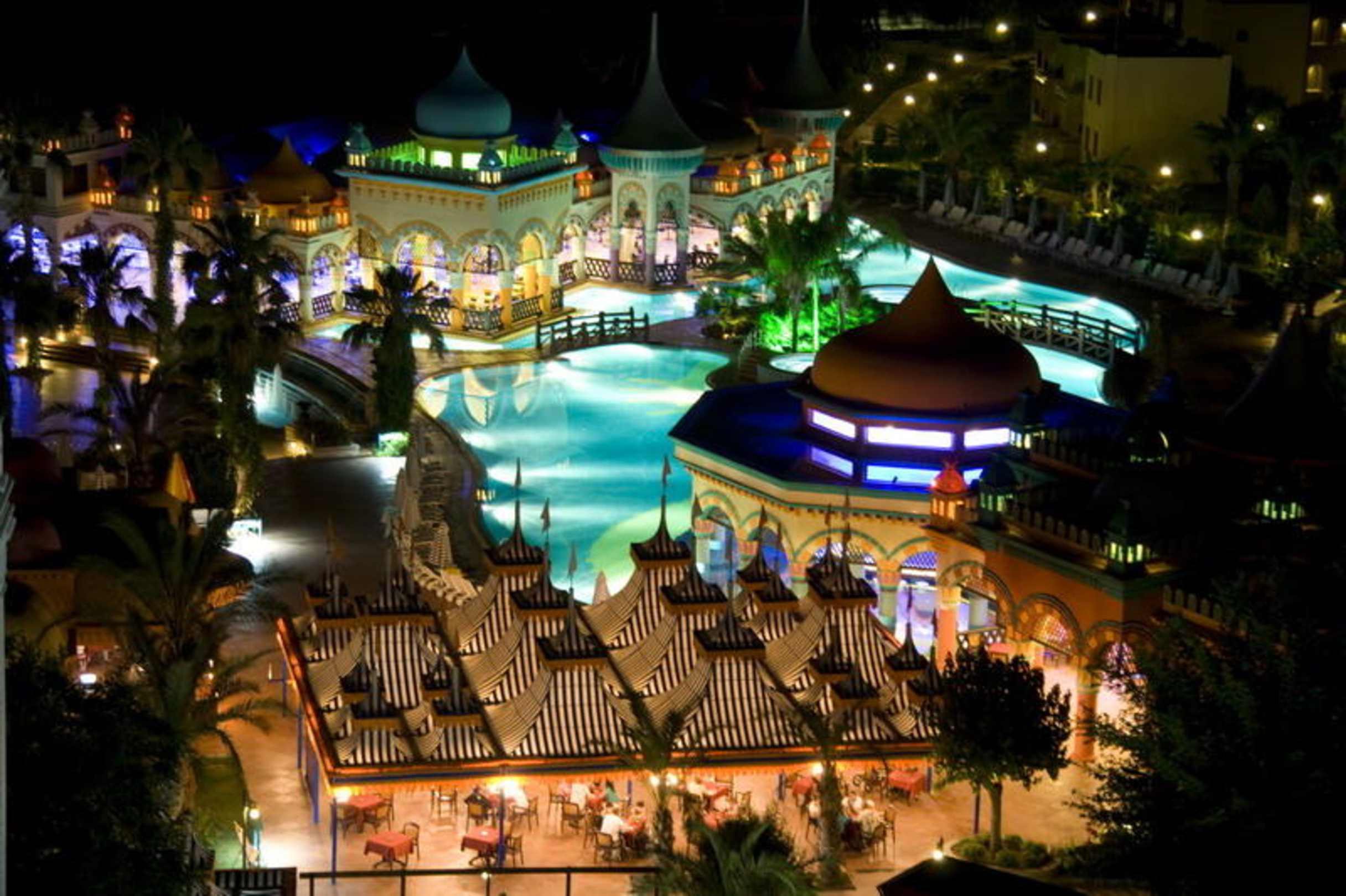 Nachtaufnahme Poolbar Kamelya World vom Hoteldach Fulya