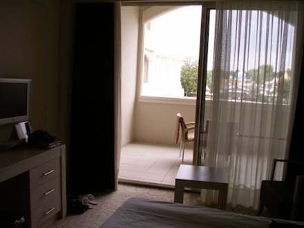 Blick vom Zimmer auf den Balkon