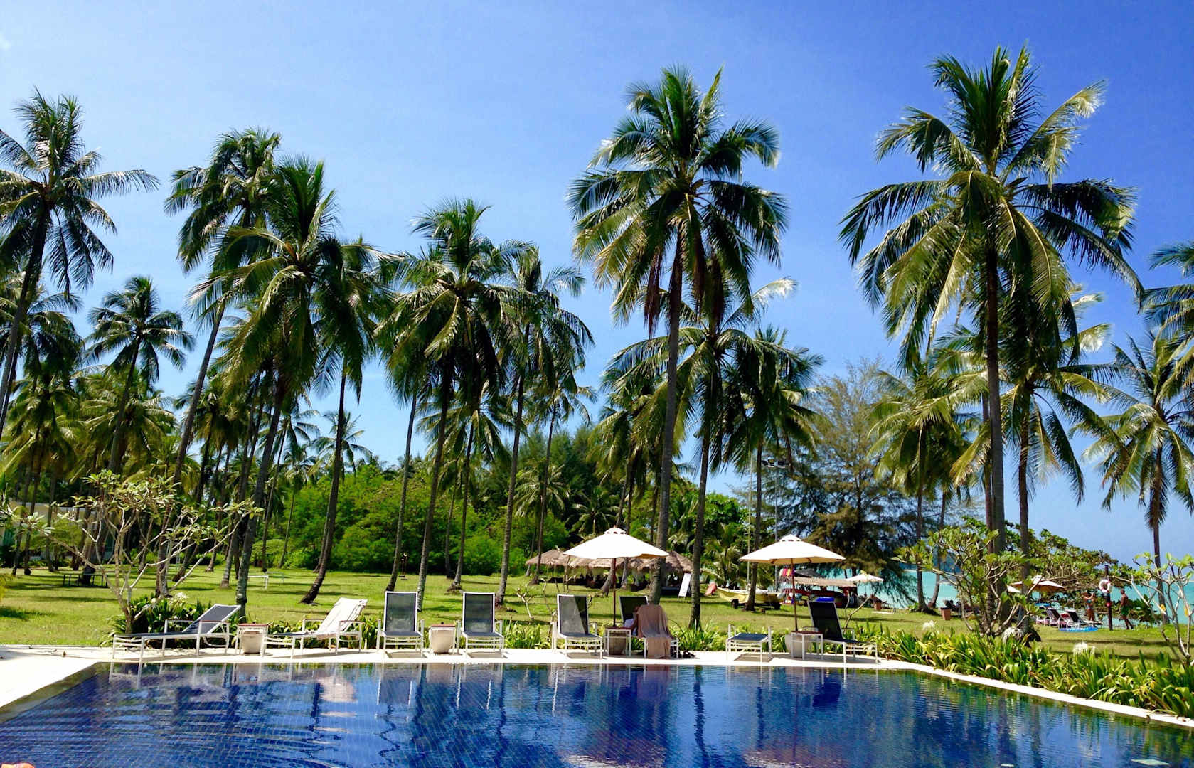 Pool am Strand mit Blick aufs Meer