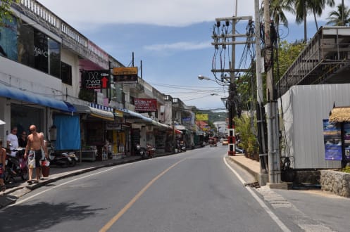Hauptstraße mit zahlreichen Geschäften und Restaurants.