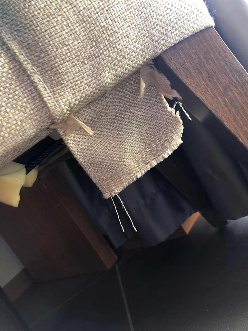Überall kaputte Stühle, Liegen und Sonnenschirme