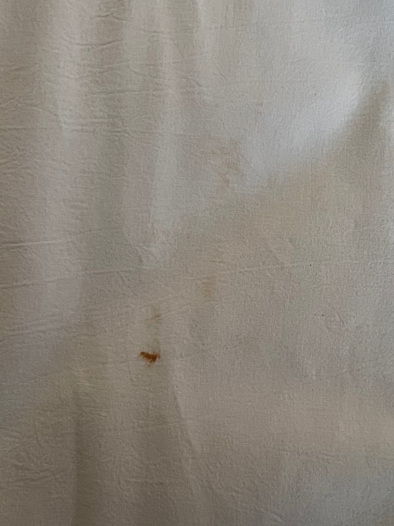 ZimmerEin Blutfleck auf dem Bettlaken direkt unter dem Kopfkissen