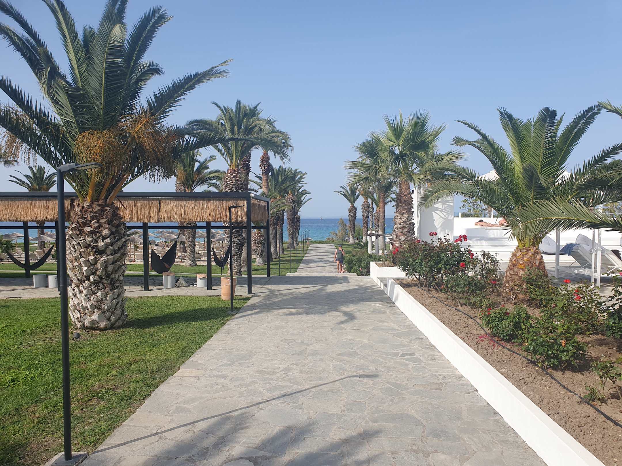 Rechts der Pool, links tolle Hängematten