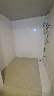 Die Dusche ist gross - da könnten in einer Kaserne auch gleich ein paar gleichzeitig duschen...