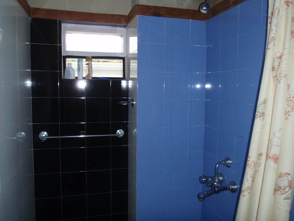Natrysk. Łazienka zabezpieczona siatką przeciw moskitom.