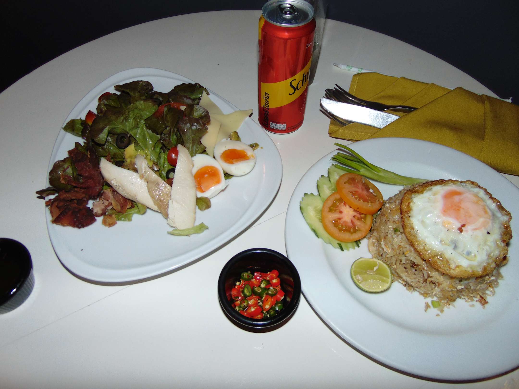 Room Service: Fried Rice mit Chicken und ein Chef Salad. Letzerer war wenig schmackhaft.